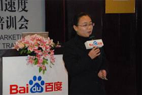 寒流入侵,涼風習習,吹不涼百度人暖暖的心田。2008年11月28號,營銷加速度——百度營銷專家培訓會在我司三樓商務會所拉開了帷幕。眾多企業家朋友齊聚一堂,敞開心扉,交流分享。我司美女主持張捷女士擔任會議主持,貼心的問候,朝氣的笑容很快帶動了會場的氣氛。我司丁溱平女士和盧全女士擔任此次會議的主講,兩位主講精彩而深動的演講吸引了在場的每位客戶。
