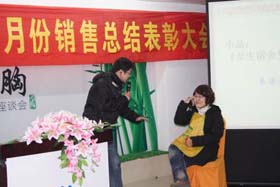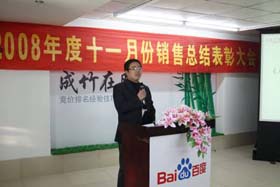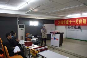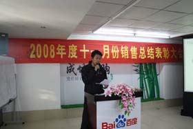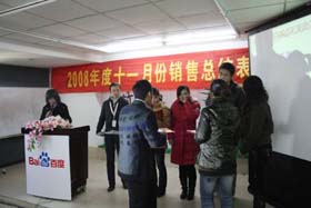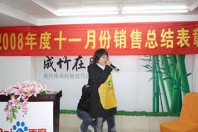 寒流襲擊,天氣驟冷,凍結不了我們熾熱的冠軍夢。2008年12月6日上午,我司11月銷售總結大會在公司7樓會議室開展得如火如荼。此次會議實現了從純娛樂向分享經驗模式的轉變,除了常規的歌曲表演、小品表演、“金典故事”講述外,我們更偏重于大家銷售經驗、工作心得及個人見解的分享。一個人就是一個哈姆雷特,我們的銷售精英們個個經驗豐富,演講起來一點也不遜于王安之等高級培訓講師,相比之下更具有實用價值,更貼近我們的生活。